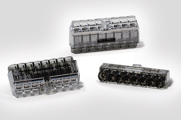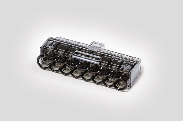 40% più piccoli - design salvaspazio. Bassa forza di inserimento - facili e veloci da utilizzare. Foro di test di facile accesso e design innovativo degli ingressi. Facili da installare anche in situazioni difficili quali le installazioni sospese. Il corpo trasparente permette un controllo visivo dell'installazione. Colori diversi per ogni misura. Si può inserire un diverso diametro per ogni ingresso. Installazioni, applicazioni e manutenzioni sicure. Comoda Variobox con 350 morsetti HCPM di varie misure(148-90046). I morsetti HelaCon vengono utilizzati per connessioni rapide e affidabili di cavi e conduttori nelle installazioni elettriche. La nuova generazione di morsetti HelaCon Plus Mini può essere applicata senza attrezzo usando la molla a spinta integrata. I morsetti HelaCon Plus utilizzano una doppia molla che assicura un facile uso ed una tenuta perfetta, approvata per cavi rigidi e semirigidi.