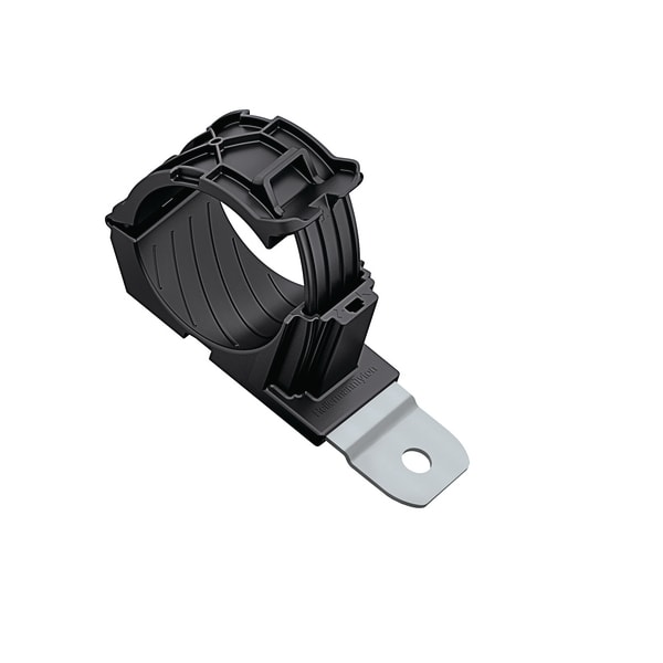 Fermacavi a cricchetto serie D per diametri di legatura da 35,1 mm a 51,0 mm. Il design della chiusura a cricchetto in un unico pezzo consente una facile installazione durante il preassemblaggio o l'assemblaggio finale. Le configurazioni multiple gestiscono un'ampia gamma di diametri e applicazioni, riducendo l'inventario dei pezzi. L'interno del fermacavo è progettato per guidare e centrare la legatura per ridurre le pizzicature. La funzione di sgancio facile consente regolazioni e manutenzioni rapide. Il PA66 modificato agli urti, stabilizzato al calore e ai raggi UV, garantisce una lunga durata, sia all'interno che all'esterno.. La piastra di montaggio in acciaio tollera il montaggio di coppie elevate ed è trattata per resistere agli agenti chimici e alla nebbia salina. La famiglia Ratchet P-Clamp offre versatilità nella gestione di cavi e tubi. Il design robusto e l'utilizzo di materiali durevoli la rendono ideale per un utilizzo heavy duty, sia all'esterno che all'interno. La clip può essere chiusa con una sola mano sul diametro desiderato. Il meccanismo di rilascio permette di rimuovere i cavi in maniera non distruttiva con il semplice utilizzo di un cacciavite. Questo permette di poter riutilizzare la clip senza dover rimuovere viti o altro. La famiglia Ratchet P-Clamp è disponibile in quattro misure e diverse configurazioni di montaggio.