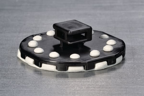 Basetta PMB5 per fissaggio con pasta o liquido adesivo. La sua particolare geometria offre una perfetta integrazione con l'adesivo. Grazie alla sua ampia base, può essere utilizzata anche su superfici irregolari. Può essere anche utilizzata con la colla a caldo in quanto è composta da PA66 stabilizzato al calore. La basetta PMB5 è l'alternativa ideale alle basette classiche quando è necessario un fissaggio affidabile, ma senza viti. Grazie alla sua forma specifica può essere installata anche su superficiirregolari. Questa basetta per pasta adesiva è utilizzata nel settore delle forniture ferroviarie e nel settore delle energie rinnovabili. Ulteriori applicazioni sono nel settore dell'industria elettrica e nella produzione di quadri elettrici. La basettaPMB5 è adatta al fissaggio con pasta o liquido adesivo.