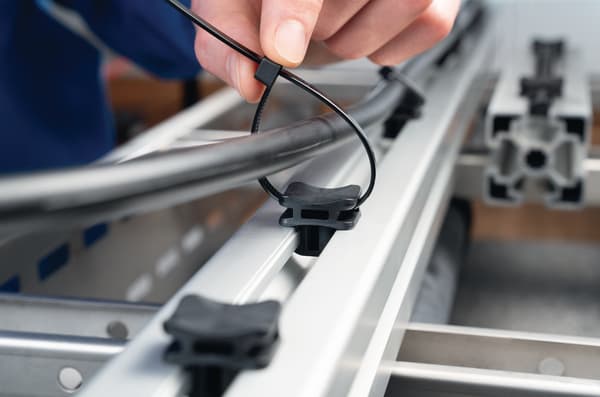 Facile da montare (un quarto di giro). Aderenza perfetta dopo il montaggio. Per fascette fino a una larghezza di 8 mm. Possibile fissaggio con dado 24er. Possibilità di fissaggio del cavo longitudinalmente e trasversalmente al profilo. Centratura dei cavi in fascio grazie alla forma più profonda della superficie. L'ACFM1W13PT3.5 è appositamente progettato per il profilo Ziegler con una larghezza della scanalatura a T di 13 mm e dimensioni esterne di 45 mm. Il fatto che non sia necessario alcun foro di montaggio, l'installazione e la gestione dell'ACFM sono molto semplici. Il supporto del telaio in alluminio è fissato saldamente nel punto preferito con un quarto di giro e quindi si adatta saldamente. Può essere facilmente allentato e riposizionato in qualsiasi momento.