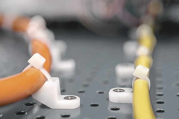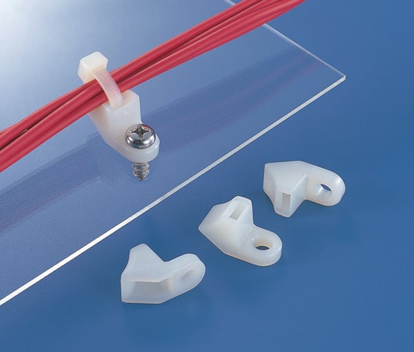 Supporti con fissaggio laterale a vite. Ideali per fissare fasci più larghi e più pesanti. Adatti a fascette con larghezza massima di 8 mm. In aree con spazi limitati questi supporti consentono al cavo di essere fuori asse rispetto al foro di fissaggio epossono essere installati direttamente sull'apparecchiatura principale. Contribuiscono a diminuire i costi in quanto poche misure possono essere utilizzate con un'ampia gamma di fascette di cablaggio.