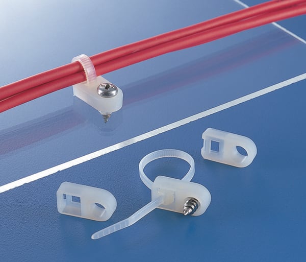 Supporti con fissaggio laterale a vite. Ideali per fissare fasci più larghi e più pesanti. Adatti a fascette con larghezza massima di 8 mm. In aree con spazi limitati questi supporti consentono al cavo di essere fuori asse rispetto al foro di fissaggio epossono essere installati direttamente sull'apparecchiatura principale. Contribuiscono a diminuire i costi in quanto poche misure possono essere utilizzate con un'ampia gamma di fascette di cablaggio.