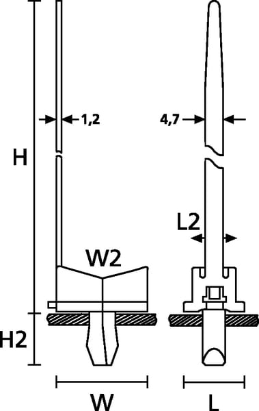 Installazione veloce. Supporto composto da due parti. Facile da inserire. Adatto a diverse misure di fascette. I supporti con fissaggio a rivetto serie TY sono indicati per l'utilizzo nelle applicazioni in cui è richiesta un'elevata resistenza all'estrazione (ad es. nell'industria aeronautica). Il rivetto realizzato in due parti assicura che, una volta installato, l'ancoraggio non possa uscire dal pannello. Per aree con accessi ristretti.