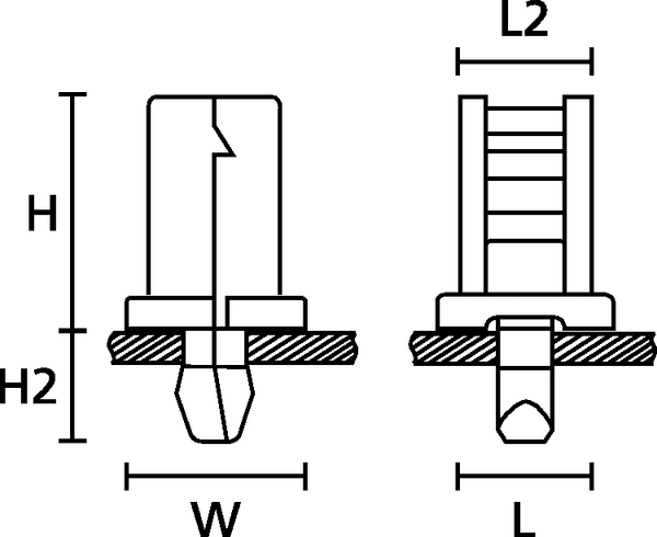 Installazione veloce. Supporto composto da due parti. Facile da inserire. Adatto a diverse misure di fascette. I supporti con fissaggio a rivetto serie TY sono indicati per l'utilizzo nelle applicazioni in cui è richiesta un'elevata resistenza all'estrazione (ad es. nell'industria aeronautica). Il rivetto realizzato in due parti assicura che, una volta installato, l'ancoraggio non possa uscire dal pannello. Per aree con accessi ristretti.