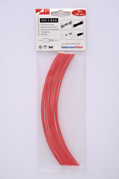 Guaina a parete sottile e flessibile in poliolefina reticolata. Elevato rapporto di restringimento (3:1). Pratici sacchetti di dimensioni ridotte con 10 spezzoni pretagliati di lunghezza 200 mm. Si adatta a cavi con diametro variabile. Le guaine HIS-3 insacchetto sono utilizzabili per l'isolamento e la protezione di cavi e cablaggi.