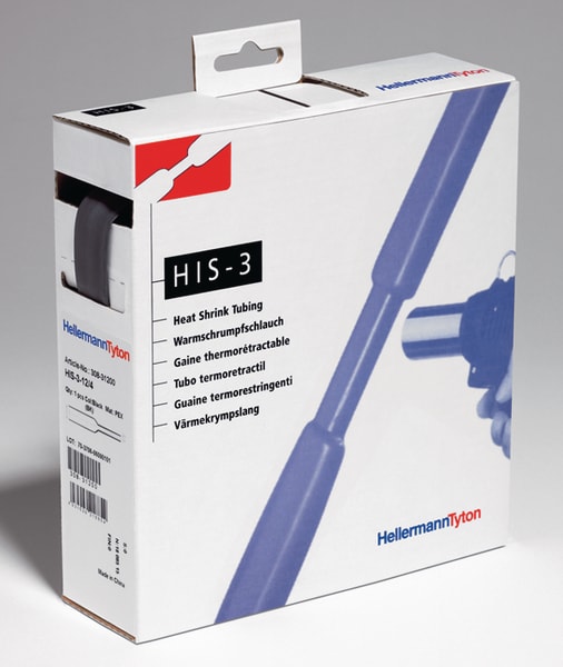 Pratiche confezioni di guaina senza adesivo in formato dispenser . Fattore di restringimento 3:1. Disponibili 7 misure che coprono il range da 1 a 20 mm di diametro, riducendo notevolmente lo stock. Il colore trasparente è zero alogeni. HIS-3 viene utilizzato per una vasta gamma di applicazioni nell'isolamento elettrico garantendo una elevata protezione dalla corrosione e dall'abrasione meccanica.