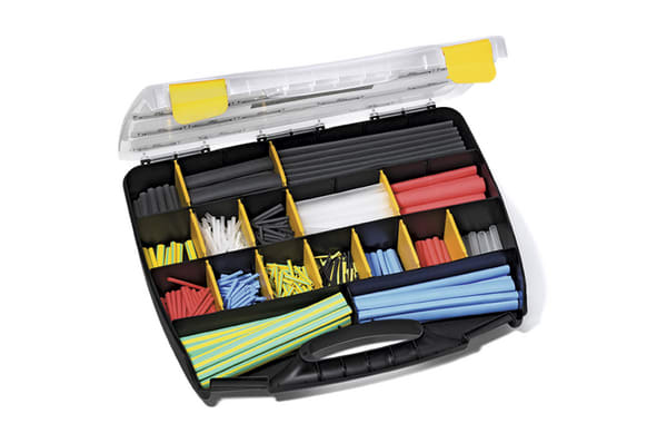 Ampia gamma di diametri, colori e lunghezze. Per l'isolamento, la protezione e l'identificazione. La dimensione degli scompartimenti può essere modificata spostando i divisori gialli. Con ShrinKit 321 HellermannTyton ha imposto un nuovo standard per le guaine termorestringenti: la gamma di guaine termorestringenti ShrinKit con il loro fattore di restringimento 3:1 copre molteplici applicazioni.