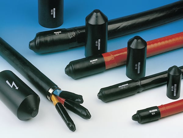 Sigilla il cavo durante lo stoccaggio o il trasporto. Sufficienti per cavi in bassa tensione (0,6/1 kV). Rivestiti internamente di adesivo impermeabilizzante. Rapporto di restringimento elevato per ridurre il numero di diametri. Terminazione contrassegnata con un fulmine per indicare cavo in tensione. Può essere fornito con valvola di sfogo per cavi pressurizzati. I cappucci termorestringenti generalmente sono utilizzati per proteggere cavi che contengono alluminio o acciaio oppure come copertura di caviisolati con polimeri o carta.