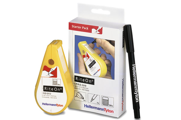 Dispenser compatto portatile di etichette autolaminanti. Facilita la scrittura e l'applicazione delle etichette. Copre una vasta gamma di diametri di cavo. Ideale per piccoli volumi, per lavori di manutenzione e riparazione. Il testo si può scrivere con lo speciale pennarello con inchiostro ad asciugatura rapida. RiteOn Starter Pack L'ideale per cominciare ad utilizzare la comoda soluzione di HellermannTyton per l'identificazione manuale.Ricarica Le ricarche sonon disponibili in 6 differenti colori per ogni tipo di applicazione. Ricaricare il dispenser RiteOn è più che semplice. Pennarello Pennarello indelebile per una identificazione affidabile. L'inchiostro indelebile non è rimuovibile e si asciuga molto velocemente. Disponibile in coppie di colore nero o rosso.