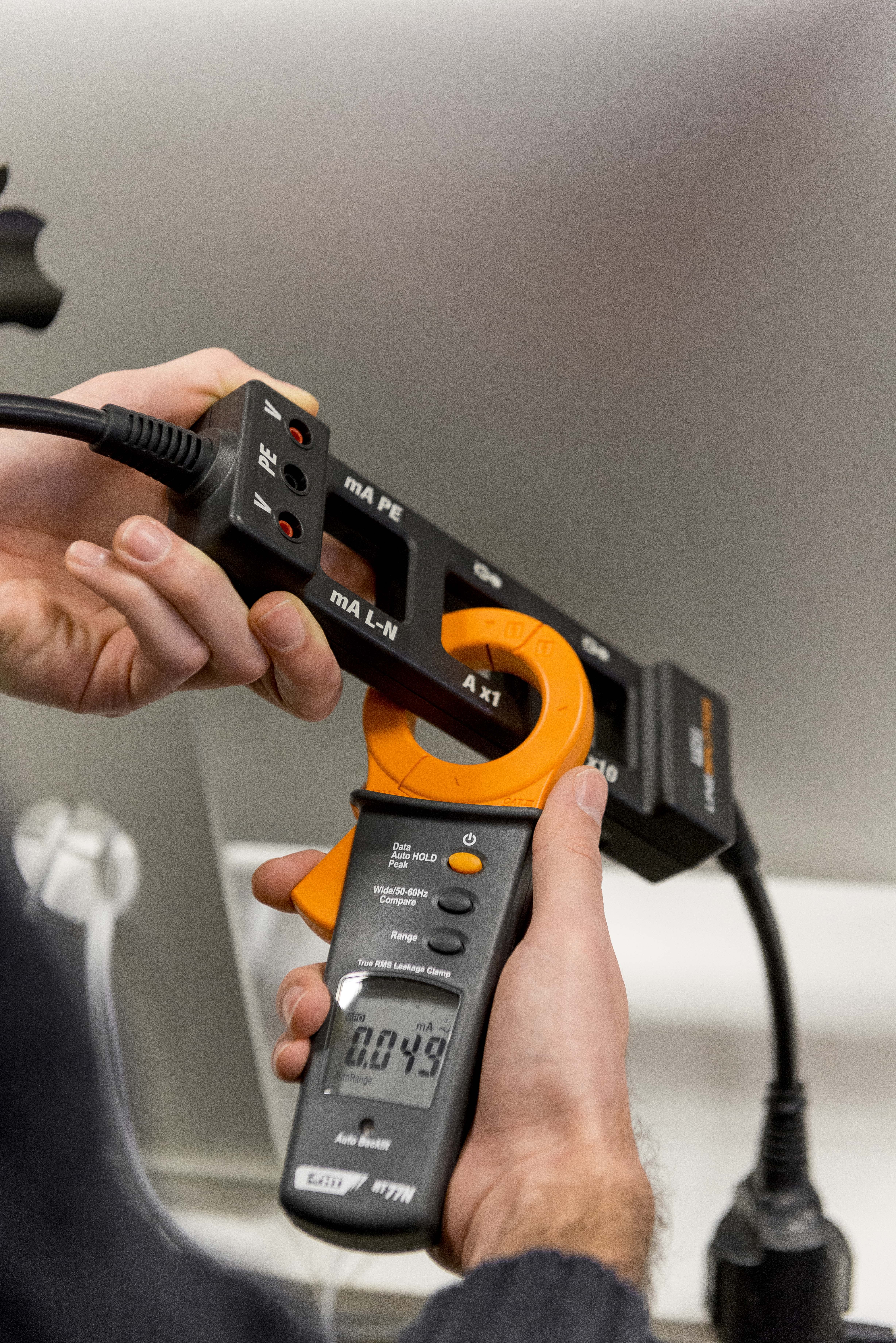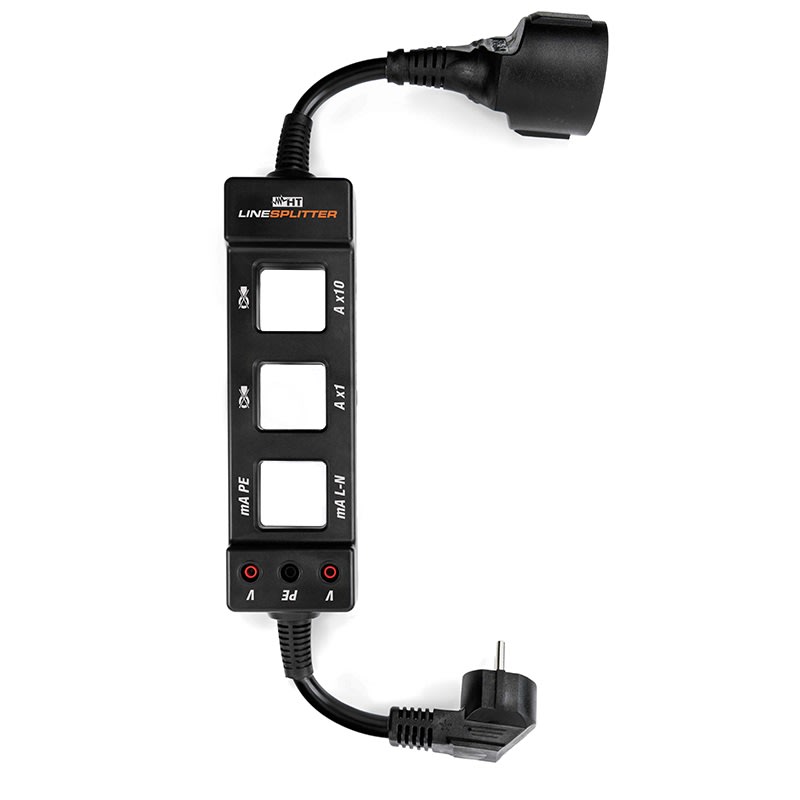 Il LINESPLITTER é uno strumento studiato e progettato da HT in grado di realizzare la separazione tra i conduttori attivi di Fase, Neutro e PE , per utenze monofase alimentate da cavi in corda 2 Poli o 3 Poli con assorbimento fino a 16A. Questo permette di eseguire misure immediate di corrente tramite l’uso di pinze amperometriche/multimetri digitali che altrimenti non sarebbero possibili direttamente sulle corde stesse, in quanto si dovrebbe spellare la guaina esterna del cavo per avere accesso ai singoli conduttori e quindi fare la misura. Lo strumento è alimentato direttamente dalla rete 230V tramite spina Schuko incorporata. Il LINESPLITTER è conforme alla normativa IEC/EN61010-1, relativa agli strumenti di misura elettronici. Lo strumento può essereusato per misure di CORRENTE e TENSIONE AC su installazioni con CAT II 240V verso terra, max corrente di carico 16A.