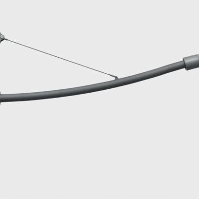 tubolare in acciaio zincatura a caldo e sottoposto a fosfocromatazione, doppia mano di fondo, passivazione a 120° C, verniciatura liquida grigia testurizzata RAL 9007, cottura a 150° C. Braccio completo di tirante in acciaio inox, fissaggio al palo tramite 2 viti M6. Colore: Grigio