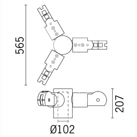 Realizzato in acciaio zincatura a caldo e sottoposto a fosfocromatazione, doppia mano di fondo, passivazione a 120° C, verniciatura liquida grigia testurizzata RAL 9007, cottura a 150° C. Fissaggio al palo tramite 2 grani M8 antiallentamento . Idone per pali con diametro terminale ø102mm . Dimensioni (mm): 565x207 . Colore: Grigio.