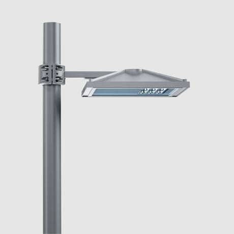 Tubolare in acciaio zincato a caldo e sottoposto a fosfocromatazione, doppia mano di fondo, passivazione a 120° C, verniciatura liquida grigia testurizzata RAL 9007, cottura a 150° C. done per pali con diametro ø120mm. Tramite utilizzo accessorio 6164 anche su pali cilindrici ø114mm.