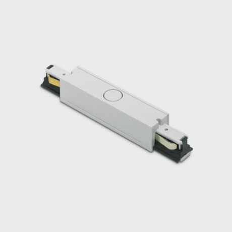 MZ63 - Giunto diretto per binario basso voltaggio 48V. Permette la connessione elettrica e meccanica tra due binari conseguenti e il collegamento all'unità di alimentazione remota o cavo di alimentazione per sospensione. Include due testate di chiusura per le estremità del binario non cablate. Connessione meccanica sul binario. Dimensione: 129x21x21mm. Bianco.