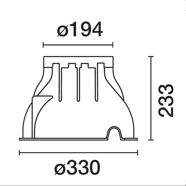 Realizzata in materiale plastico (polipropilene). Completa di tappo anteriore con sistema per estrazione dei cavi e doppia entrata dei cavi. D=330 mm