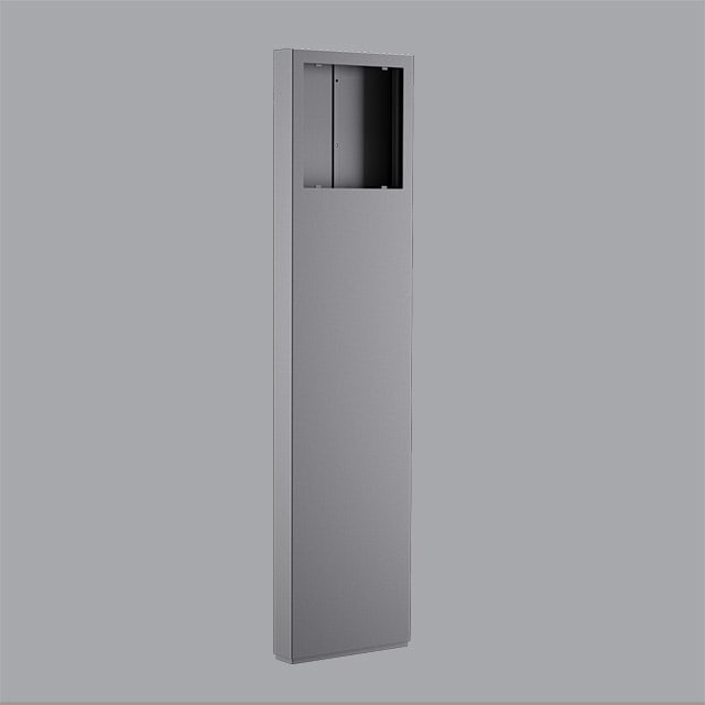 Paletto realizzato in lega di alluminio e sottoposto a trattamento di verniciatura a polveri che fornisce un'alta resistenza agli agenti atmosferici e ai raggi UV. Carter di chiusura superiore in alluminio verniciato. Fissaggio del vano ottico Walky al paletto tramite singola vite in acciaio inox tipo torx (di sicurezza). All'interno del paletto alloggiano due aste in acciaio inox fissate alla basetta inferiore, conferendo al prodotto un elevata resistenza agli urti. Il paletto è ancorato al pavimento tramite la basetta di fissaggio in acciaio zincato e verniciata.