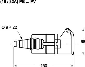 Prese mobili per uso industriale bassissima tensione • Conforme alle norme CEI EN 60309-1 e -2 • Corpo, frutto e coperchietto in materiale isolante termpolastico autoestinguente • Prese: coperchietto a molla • Collare serracavo incorporato al frutto, entrata con passafilo • 20÷25V e 40÷50V DC