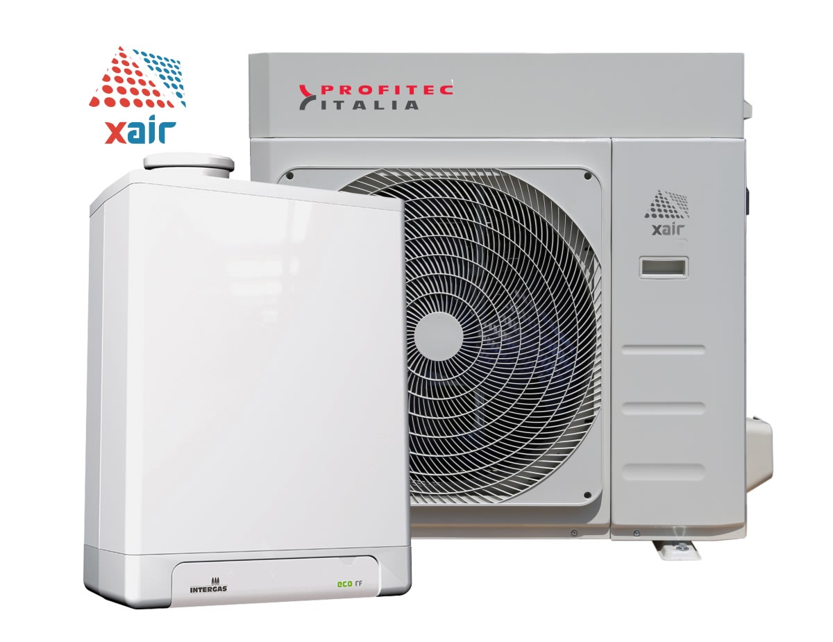 Sistema ibrido pompa di calore + caldaia a condensazione Adatta per abitazioni di medie e grandi dimensioni. XAIR PRO HYBRID unisce la tecnologia inverter ai motori DC brushless assieme alla qualità delle caldaie INTERGAS serie HR ECO. Pompa di calore XAIR PRO Prestazioni al top, in inverno: SCOP fino a 4,53 elevate prestazioni anche con temperature esterne rigide Prestazioni al top, in estate: SEER 4,91, elevate prestazioni anche con temperature esterne alte Alti livelli di silenziosità: grazie ai ventilatori di tipo assiale con motore DC brushless Versatile: disponibili fino a 12 modelli per soddisfare le diverse esigenze Caldaia a condensazione HR ECO Efficiente: migliora l’efficienza energetica fino al 15% rispetto alle altre caldaie a condensazione e condensa sempre in sanitario Affidabile: solo 4 componenti in movimento riducono i guasti da usura Ecologica: massima riduzione delle emissioni di CO2 e di NOx (classe 6)