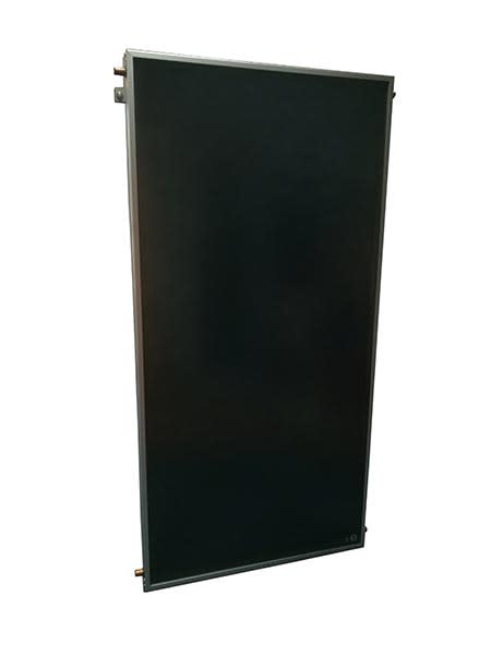 Collettore solare piano verticale ad alta efficienza. Certificato EN12975, CE, SolarKeymark, KIWA avente le seguenti caratteristiche: Cassa in profilato di alluminio verniciato colore grigio - Isolamento termico in lana di roccia alta densità 45 mm - Piastra solare captante con tubi collettori diametro 22 mm - Assorbitore con trattamento altamente selettivo al titanio - Saldature a laser - Vetro temprato, basso tenore di ferro