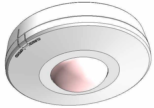 Rivelatore di presenza da interno in doppia tecnologia per installazione a soffitto composto da 1 PIR ed 1 microonda con antenna planare a 10,525 GHz. La struttura di forma circolare molto sottile lo rende particolarmente idoneo ed efficace in installazioni domestiche. Un sofisticato algoritmo che analizza contemporaneamente le due tecnologie di rivelazione, lo rende idoneo anche per installazioni in ambienti difficili, garantendo un elevato grado di immunità a fenomeni che in altri tipi di rivelatori potrebbero essere fonte di allarmi impropri. La sequenza dei preallarmi forniti dai due sensori viene opportunamente analizzata dal microprocessore evitando che fenomeni esterni come correnti d'aria, sorgenti di calore e disturbi di origine elettrica diano luogo ad allarmi indesiderati. Provvisto della funzione antimascheramento (tramite conteggio impulsi) e della funzione warning. Il mascheramento del sensore infrarosso viene rilevato, ad impianto inserito, dopo cinque attivazioni della microonda in un intervallo di trenta secondi senza che il sensore infrarosso abbia effettuato rilevazioni; in questa condizione la logica di funzionamento passa da AND ad OR e viene inviata una segnalazione di allarme. La funzione warning si attiva se, ad impianto disinserito, una delle tecnologie ha rilevato per cinquanta volte senza che l'altra abbia effettuato rilevazioni. La realizzazione con componenti SMD ha reso possibile ottenere dimensioni ridotte nonostante la complessità delle funzioni svolte, una maggiore affidabilità del circuito e non ultima una elevata immunità a disturbi elettromagnetici. La lente semisferica e la microonda con antenna planare, garantiscono una copertura su 360°. L'area di copertura nella parte più ampia è di circa 11,4 m se installatoa 4 m di altezza. Conforme alle norme CEI 79-2 2° ed. '98 Liv I.