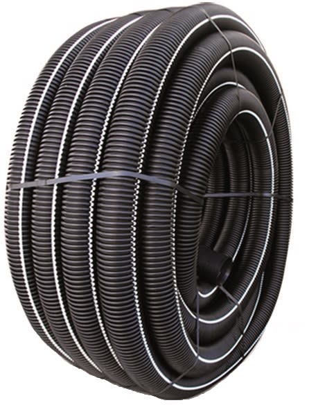 Tubo corrugato doppia parete per passaggio cavi settore elettrico, garantisce una resistenza agli UV notevolmente superiore a quella dei tradizionali materiali in commercio (Test di invecchiamento artificiale tramite esposizione alle radiazioni UV per 5000 ore, secondo la norma EN 1297). I benefici che ne derivano sono rivolti soprattutto alle fasi di stoccaggio, sia in magazzino che in cantiere, dove tanto le organizzazioni di rivendita quanto le imprese installatrici possono talvolta necessitare di lunghi periodi di permanenza delle merci all’aperto, con rischio di degrado del colore e della qualità del materiale. Le bande colorate coestruse consentono la posa multipla di tubi dentro la medesima trincea, potendo personalizzare il colore a seconda del servizio dedicato. Il colore standard per cavi elettrici è grigio chiaro. • COSTRUZIONE: Tubo corrugato a doppia parete tipo normale di colore nero esternamente con bande grigie coestruse e nero internamente • IMPIEGO: Protezione cavi elettrici B.T. e M.T.(bassa e media tensione) e telefonici • RESISTENZA ALLO SCHIACCIAMENTO: 450 N • COSTITUZIONE: Additivazione supplementare ai raggi UV • RAGGIO DI CURVATURA: 15 volte il diametro esterno • LIMITI D’IMPIEGO: -50 °C / +60 °C • INSTALLAZIONE: Sotterranea in trincea • RIGIDITA’ ELETTRICA: Eccellente