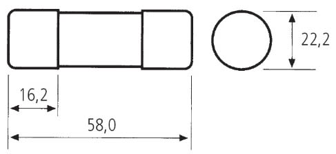 Corpo in steatite adatto a sopportare sbalzi termici molto elevati, riempito di sabbia di quarzo. L’elemento di fusione è composto da una lamina di rame ricoperta in argento. La doppia capsula ricoperta d’argento evita l’ossidazione e mantiene le caratteristiche immutate nel tempo. Tutti i fusibili cilindrici sono progettati per ridurre al minimo la potenza dissipata il cui valore è indicato sul corpo del fusibile stesso. Fusibili SCH con indicatore di fusione. Grandezza: SCH22.