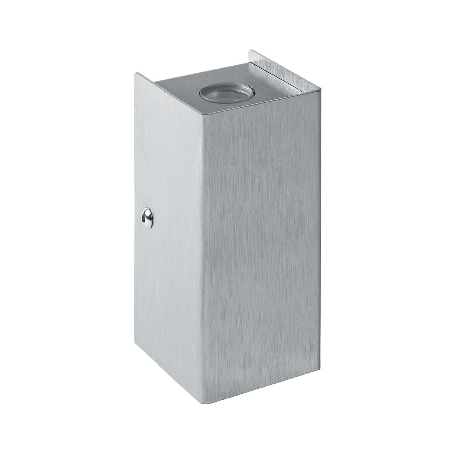 Applique da esterno, monoemissione; su superficie (parete); corpo e ghiera in acciaio inox AISI 316L, vetro extrachiaro trasparente temprato. 4W. 500 mA. 4000 K. 10°+40°.