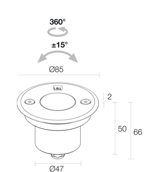 Incasso da esterno (non adatto per immersione in piscine e fontane); a incasso (soffitto, parete, pavimento); 3,5W. Flusso sorgente: 184 lm. 3000 K. 8°. Colore inox. Tondo