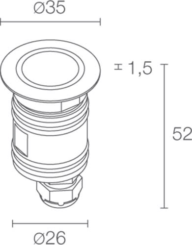 Incasso 316L uplight da esterno (non adatto per immersione); a incasso (soffitto, parete, pavimento); corpo e ghiera in acciaio inox AISI 316L, schermo in vetro trasparente temprato, schermo in vetro acidato temprato. 2W. 500 mA. Blu. Diffuso