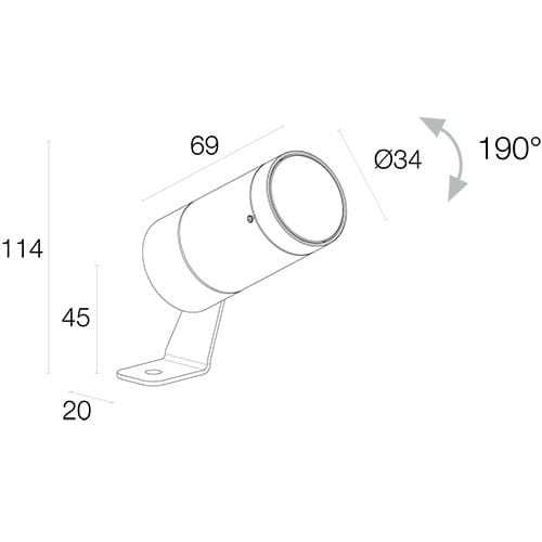 Proiettore da esterno; su superficie (soffitto, parete, pavimento, picchetto); 3,5W. 3000 K. 8°-28°. Colore Bianco. 224 lm