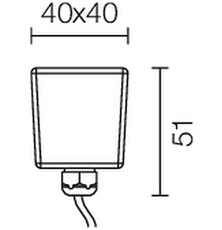 Apparecchio a incasso da esterno o interno; calpestabile; 1W - 220/350mA; 1 power LED; 4000K; CRI: 75÷85; luce diffusa; corpo in alluminio anodizzato, schermo in vetro temprato opalino ad elevato spessore; finitura: vetro sabbiato opalino; temperatura diesercizio: -10°C +45°C; dotato di sistema IPS (utilizzare corrugato Ø20 min); grado di protezione contro i liquidi e i corpi solidi: IP67; Glow Wire Test: 960°; sicurezza fotobiologica: gruppo rischio 1 secondo EN62471:2006; montaggio con cassaforma WC0410; classe di isolamento III; peso 0,18kg; dimensioni 40x40x55mm; collegamento in serie con cavo 1,5m Ø6.2 H05RN-F 2x0,75; dimmerazione disponibile mediante alimentatore dimmerabile.