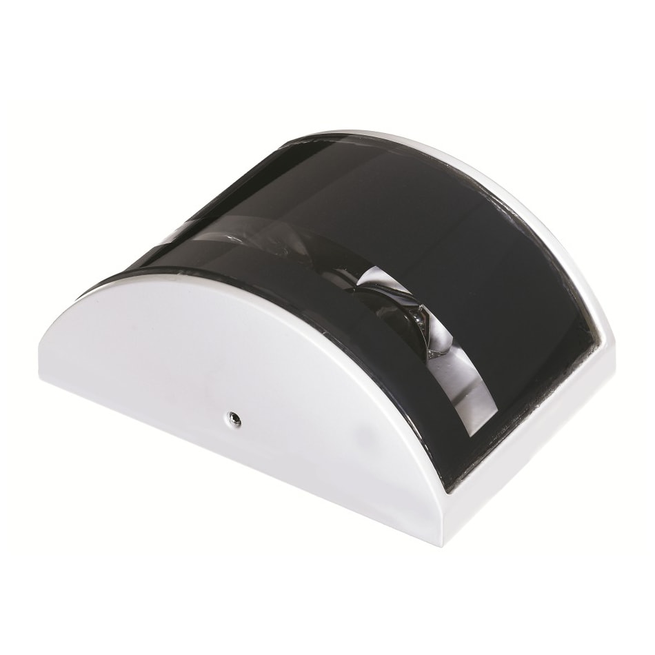 Proiettore da esterno; su superficie (davanzale); corpo in alluminio pressofuso lega EN AB 47100, schermo in vetro serigrafato; finiture: bianco; 2 power LED; 9W – 230Vac; alimentatore integrato; incluso cavo in neoprene di 1,5 m H05RN-F 3x1,0 Ø7 mm; flusso totale: 69 lm (3000K); ottica: satinata 20°x180°; colore LED: bianco - 3000K