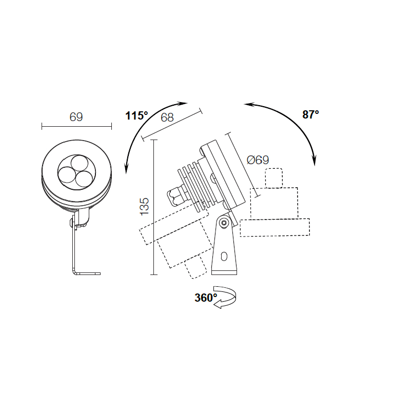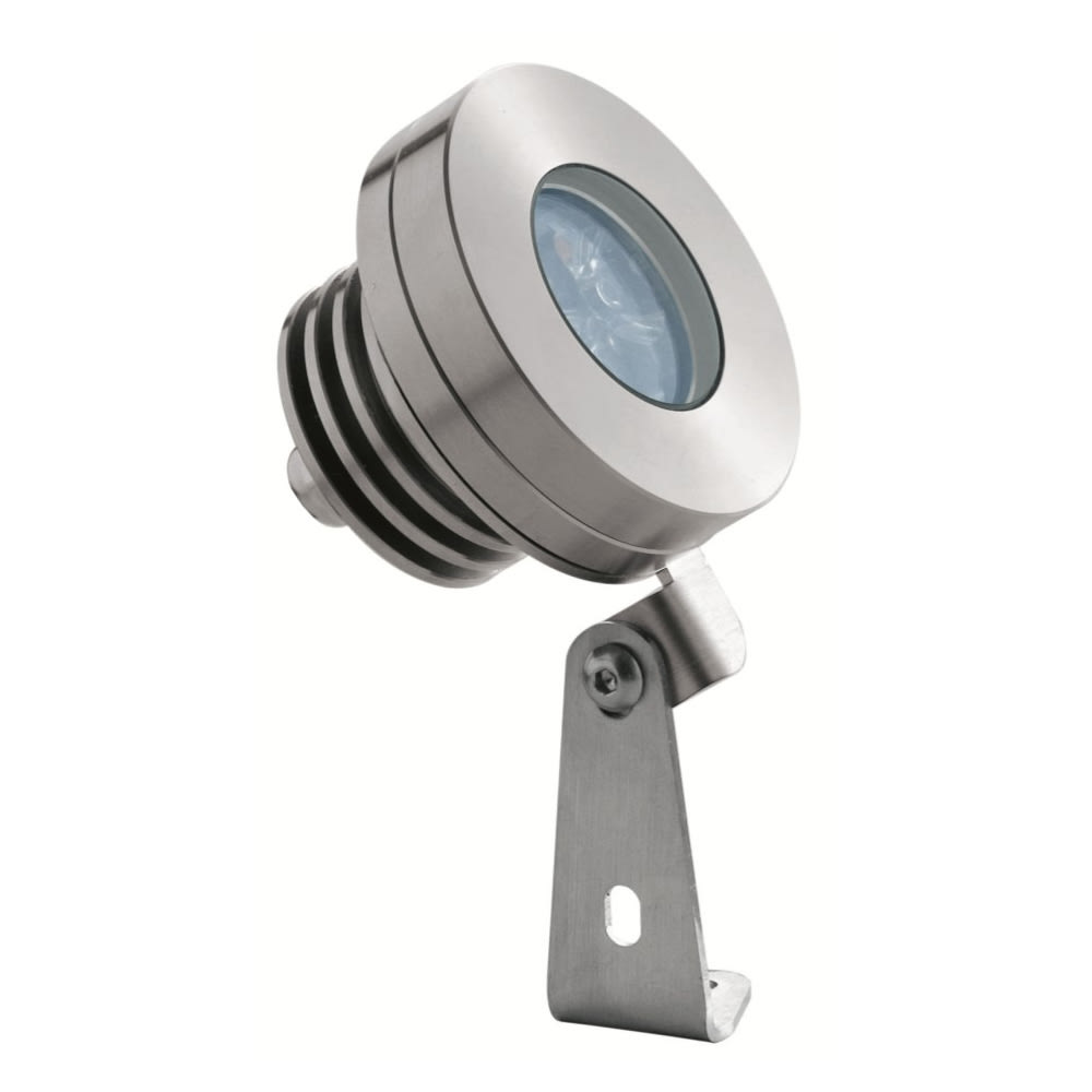 Proiettore da esterno e immersione; su superficie (soffitto, parete, pavimento, picchetto), profondità massima 10 m; corpo e ghiera in acciaio inox AISI 316 L, schermo in vetro temprato; 3 power LED; 6W (3 power LED x 2W) - 24Vdc; incluso cavo in neoprene di 5 m H05RN-F 2x0,75/0,75 Ø6,3 mm; flusso totale: 314 lm (3000K); ottiche: 24°; colore LED: bianco - 3000K; grado di protezione: IP68; grado di resistenza: IK10; dotato di sistema IPS; temperatura di esercizio: -10°C +45°C; temperatura schermo: max 30°C (Ta 25°C); Glow wire test: 960°; sicurezza fotobiologica: gruppo rischio 1 secondo EN62471:2006; classe di isolamento III; peso 0,95 kg; dimensioni ø69x60mm, h 135 mm; dimmerazione disponibile mediante dimmer in linea 24Vdc; accessori: picchetto WP0100. LED 6W 3000K 314 lm 24°.