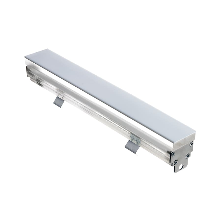 Profilo lineare da esterno, carrabile fino a 5000 kg* (solo con cassaforma in alluminio); a incasso (soffitto, parete, pavimento); corpo in PMMA, testate in acciaio inox AISI 316L, schermo in PMMA opalino. 5W. 2800K. L=260 mm. 145 lm