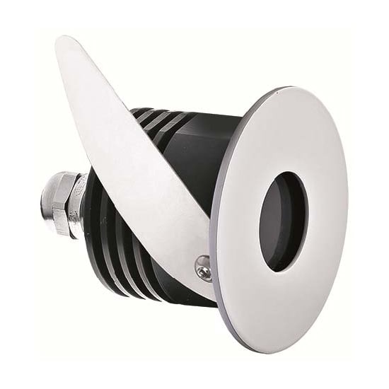 Segnapasso da esterno; a incasso (parete); corpo in alluminio, ghiera in acciaio inox; finiture: satinato; 1 power LED; max 2W - max 500mA; incluso cavo in neoprene di 1,5 m H05RN-F 2x0,35/0,75 Ø6,3 mm; collegamento in serie; flusso totale: 34 lm (3000K,500mA); ottica diffusa; colore LED: bianco - 4000K; grado di protezione: IP65; dotato di sistema IPS; temperatura di esercizio: -10°C +45°C; sicurezza fotobiologica: gruppo rischio 1 secondo EN62471:2006; classe di isolamento III; peso 0,25 kg; dimensioni ø55x52 mm; foro d'incasso: ø45 mm; volume tecnico per dissipazione: ø70x90 mm; dimmerazione disponibile mediante alimentatore dimmerabile; accessori: cassaforma WC1500, cassaforma WC1501. LED 2W 4000K.