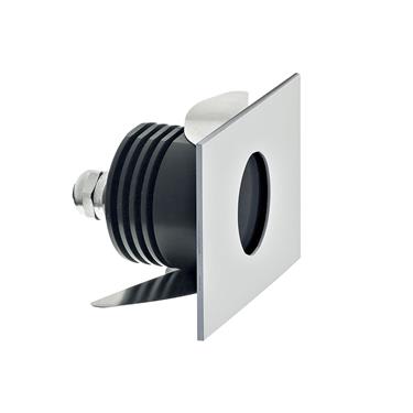 Segnapasso da interno o esterno; 2W - 350/500mA; 1 power LED; 3000K; CRI: 75÷80; ottica diffusa non abbagliante; flusso totale: 44 lm (3000K a 500mA); corpo in lega di alluminio, ghiera Acciaio Inox verniciato; finitura: bianco; temperatura di esercizio:0°C +45°C; dotato di sistema IPS (utilizzare corrugato Ø20 min) e di sistema EPS; grado di protezione contro i liquidi e i corpi solidi: IP65; sicurezza fotobiologica: gruppo rischio 1 secondo EN62471:2006; montaggio con le molle presenti sul corpo su foro in cartongesso o con cassaforma WC1500/WC1501; classe di isolamento III; peso 0,25kg; dimensioni 55x55x55mm; foro d'incasso: Ø45mm; volume d'ingombro Ø70x90mm; collegamento in serie, cablato con cavo 1,5m tipo H05RN-F 2x0,75; dimmerazione disponibile mediante alimentatore dimmerabile; accessori disponibili: cassaforma WC1500/WC1501.