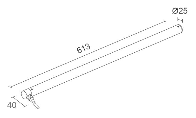 Profilo lineare da esterni e immersione; versione diffusa: 7W - 24Vdc; versione diffusa: 132 mid-power LED; 4000K; CRI: >80; ottica: diffusa; corpo in acciaio inox AISI 316L; schermo in policarbonato; PCB tropicalizzati; NTC a bordo per il controllo della temperatura; temperatura di esercizio: -10°C +45°C; IPS integrato nel pressacavo; grado di protezione contro i liquidi e i corpi solidi: IP68; grado di resistenza all'impatto IK10; sicurezza fotobiologica: gruppo rischio 1 secondo EN62471:2006; montaggio con clips orientabili, viti e tasselli; disponibili clips antivandalo; classe di isolamento III; peso 0,40kg; dimensioni ø25x613mm; collegamento in parallelo; dimmerazione disponibile mediante utilizzo di dimmer in linea 24Vdc; accessori: clips antivandalo WM0502; clips: WM0501.