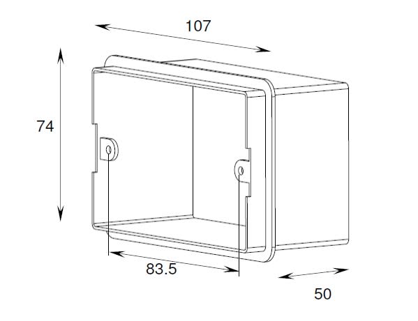La cassaforma è necessaria per l’installazione della lampada. Posizionare la cassaforma a filo del livello finale della parete. La cassaforma va posizionata prestando attenzione alla posizione dei fori ai quali andrà successivamente avvitato il corpo lampada. 107x74mm.
