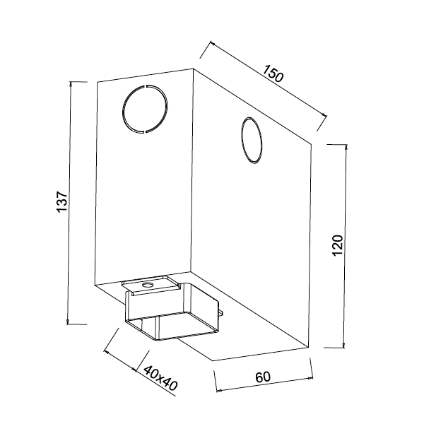 Larghezza di montaggio - 60 mm