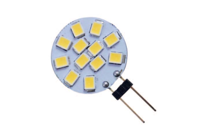 Schedina LED di minime dimensioni 1.8W - 12VDC. Per una maggiore durata di vita è consigliato utilizzare converter LED DC. 12 LED 2835SMD 1,8W G4 140lm 6400K CRI >80 - 120°.