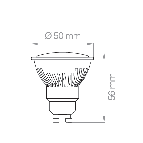 Lampadina LED 230V 5W alta dissipazione. Grazie al particolare sistema ad alta dissipazione questa lampada è idonea al montaggio in apparecchi chiusi o a tenuta stagna. Sistema interno di autodissipazione. Corpo in alluminio diffusore in policarbonato opaco. LED 5W GU10 480lm 4100K CRI >80 - 120°. 175-265V AC. Finitura silver.