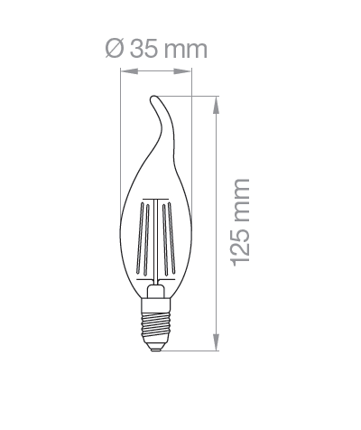 Lampadina colpo di vento E14 4W 470lm 3000K CRI >80 - 300° - 230V filamento, equivalenza con sorgente tradizionale 40W - Corpo in alluminio con bulbo in vetro trasparente.