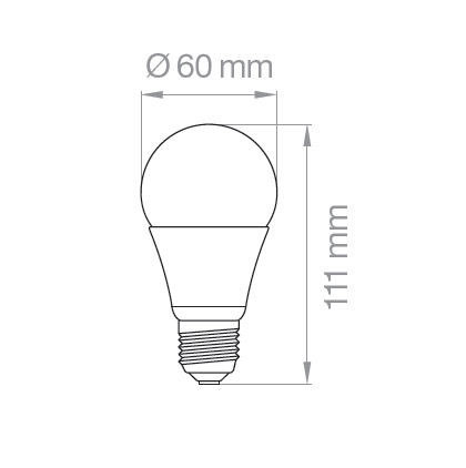 Lampadina a goccia ø60mm E27 12W equivalenza con sorgente tradizionale 85W - 230V. Corpo in alluminio ricoperto in termoplastico, bulbo in policarbonato. Goccia LED 12W E27 950lm 3000K CRI >80 - 220°