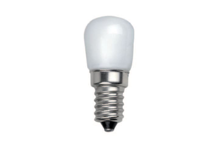 Lampadina E14 LED COB per frigoriferi o altre applicazioni 1.5W 120lm 3000K CRI >80 - 270° - 230V. Bulbo in vetro protettivo opaco. corpo in alluminio.