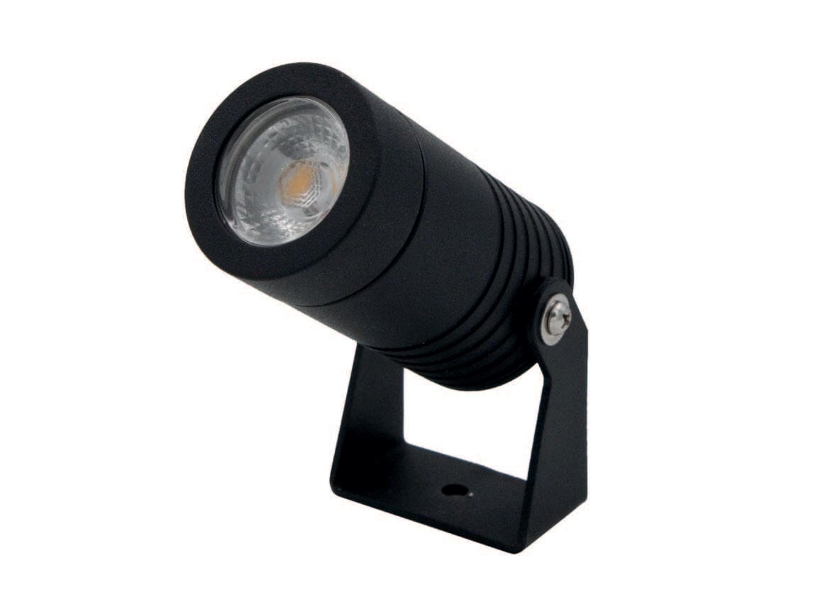 Mini proiettore LED 6W - 230V orientabile per interno ed esterno lenti facilmente intercambiabili incluse. Corpo Lega alluminio. Lente da 60° montata sul faretto. Lenti da 15° e 30° intercambiabili. Picchetto di fissaggio non incluso. LED 6W 410lm 3000K CRI >80 - 15° - 30° - 60°. Finitura nero.
