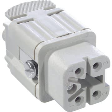 Inserti per connettore H-A fino a 400V con collegamento filettato di facile manutenzione La matrice standard compatta può essere collegata semplicemente a una spina e utilizzata universalmente per la conduzione di corrente e tensione, ad esempio nei sistemi di controllo. Nuova maggiore rigidità dielettrica, 400V in spazi ristretti Universale per la trasmissione di corrente e tensione Made in Germany