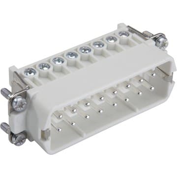 Inserti per connettore H-A fino a 400V con collegamento filettato di facile manutenzione La matrice standard compatta può essere collegata semplicemente a una spina e utilizzata universalmente per la conduzione di corrente e tensione, ad esempio nei sistemi di controllo. Nuova maggiore rigidità dielettrica, 400V in spazi ristretti Universale per la trasmissione di corrente e tensione Made in Germany