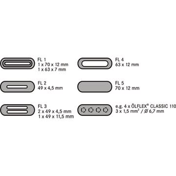 SKINDICHT® FL, pressacavo piatto con profilo conico interno, la flangia del cavo ha un utilizzo universale principalmente per cavi piatti grandi