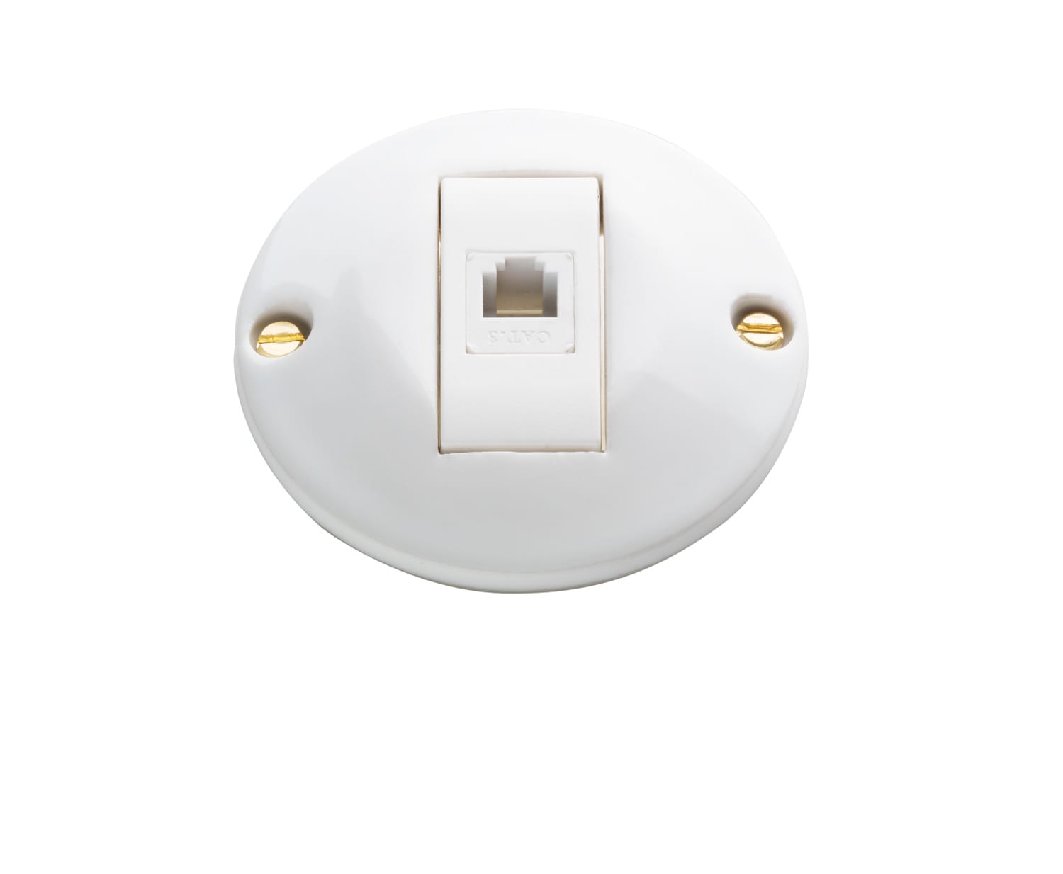 Serie VEDO - Frutto per base rame o scatola tipo 503 - presa telefonica plug 6/4 completa di viti - in porcellana bianca