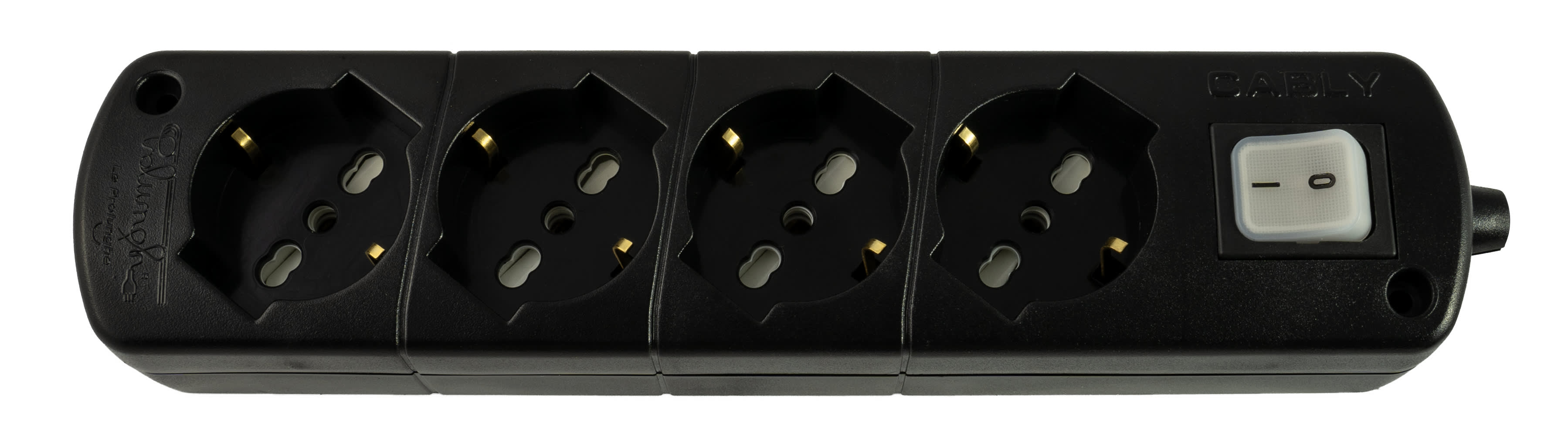 TAVOLETTE MULTIPRESA Tavoletta Cably multipresa universale con interruttore bipolare a led e prese 10/16A + Schuko e spina 16A 250V-2P+T ? 4 Uscite - Colore Nero